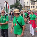 Bei zünftiger Blasmusik marschierte am Donnerstag gegen 17 Uhr die Wandertags-Wimpelgruppe aus Sebnitz auf der Bühne ein und wurde von der Prominenz begrüßt. Andreas Eggert, mit Wimpel allen voran, berichtete von ihren Erlebnissen auf den 24 Etappen der 605 km langen Tour von der Sächsischen Schweiz durch Thüringen bis in die Wartburgstadt.