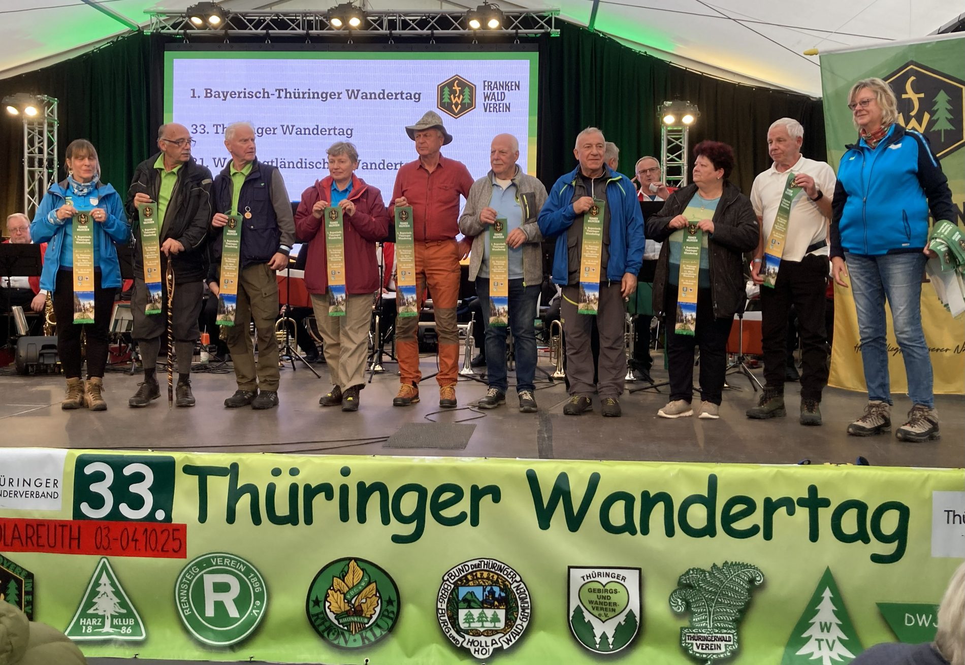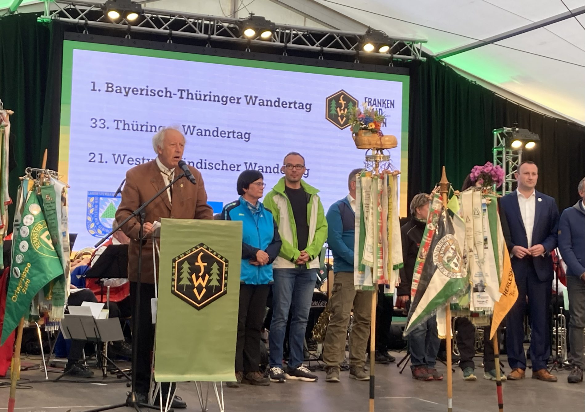 Zur Freude der zahlreichen Gäste überbrachte der erst kürzlich neu in das Amt des Präsidenten des Deutschen Wanderverbandes gewählte Dr. Michael Ermrich vom Harzklub ein Grußwort. Auch der Vorstand des Frankenwaldvereins, die beiden Landräte und kommunale Vertreter begrüßten die Wanderfreunde aus nah und fern.